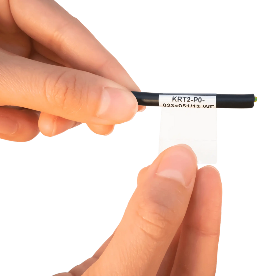 Kabel Labels lassen sich auch mit speziellen Schrumpfschläuchen realisieren. Diese sogenannten Schrumpfschlauchmarkierer sind speziell fürs Bedrucken hergestellt und lassen sich mit einem Thermotransfer Etikettendrucker dauerhaft lesbar bedrucken. Diese Art der Kabelbeschriftung ist besonders beständig und widerstandsfähig. Die Anbringung der Schrumpfschlauchmarkierer erfolgt durch Hitzeeinwirkung. Es wird hierfür, anders als bei den Kabelschildern, kein zusätzliches Verbrauchsmaterial benötigt und auch kein Klebstoff, wie bei den Kabeletiketten. Bedenken Sie aber, dass das Beschriftungsfeld bei den Schrumpfschläuchen stark vom Kabeldurchmesser abhängt.