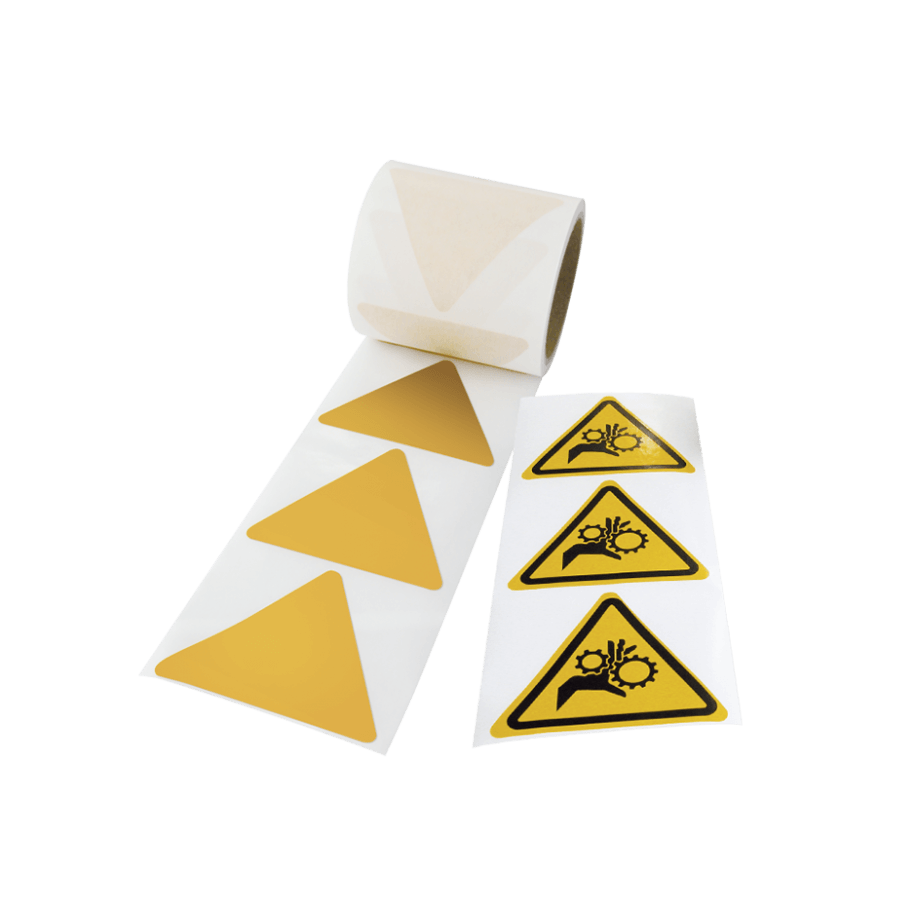Mit unseren WRT-V-SL Warnschildern aus Vinyl können Sie Ihre Sicherheitskennzeichnung flexibel selbst gestalten und drucken. Die dreieckigen Warnschilder sindsehr auffällig in der Farbe Signalgelb und bereits mit einem permanten haftenden Acrylatkleber ausgestattet.