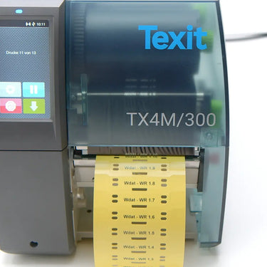 Durch das mittige Sensorloch lassen sich die BRT Kabelbeschriftungsschilder mit unserem TX4/300 Industriedrucker oder auch mit dem kostengünstigen Einsteigerdrucker TEP5/300 beschriften. Für ein optimales Druckergebnis empfehlen wir die Verwendung unserer hochwertigen Farbbänder.